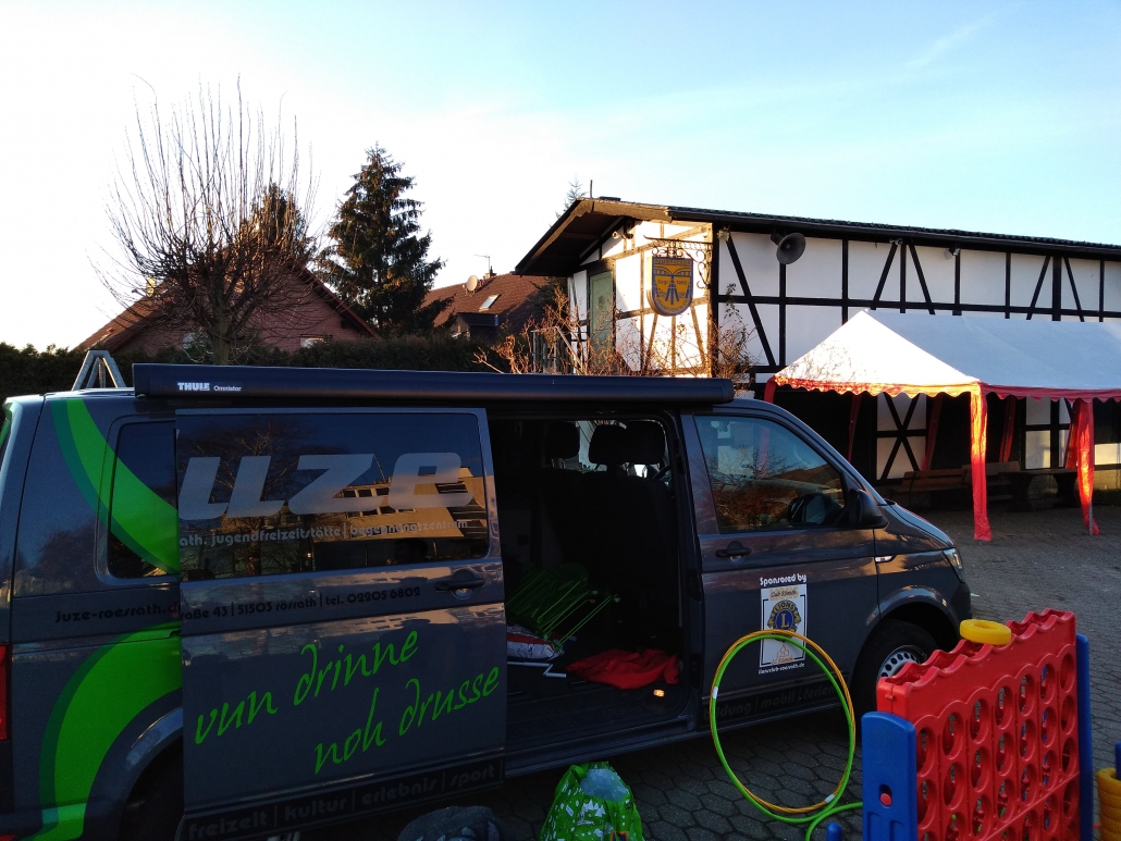 “Vun drinne noh drusse” ist eine Erweiterung des Angebots der Offenen Kinder- und Jugendarbeit in Rösrath. Seit 2018 ist der JUZE-Bus zweimal die Woche unterwegs zu unterschiedlichen Standorten im Stadtgebiet von Rösrath. Möglich ist dies durch die finanzielle Unterstützung des Lions Club Rösrath. Mit dabei sind Spiel-, Sport und Kunstmaterialien.